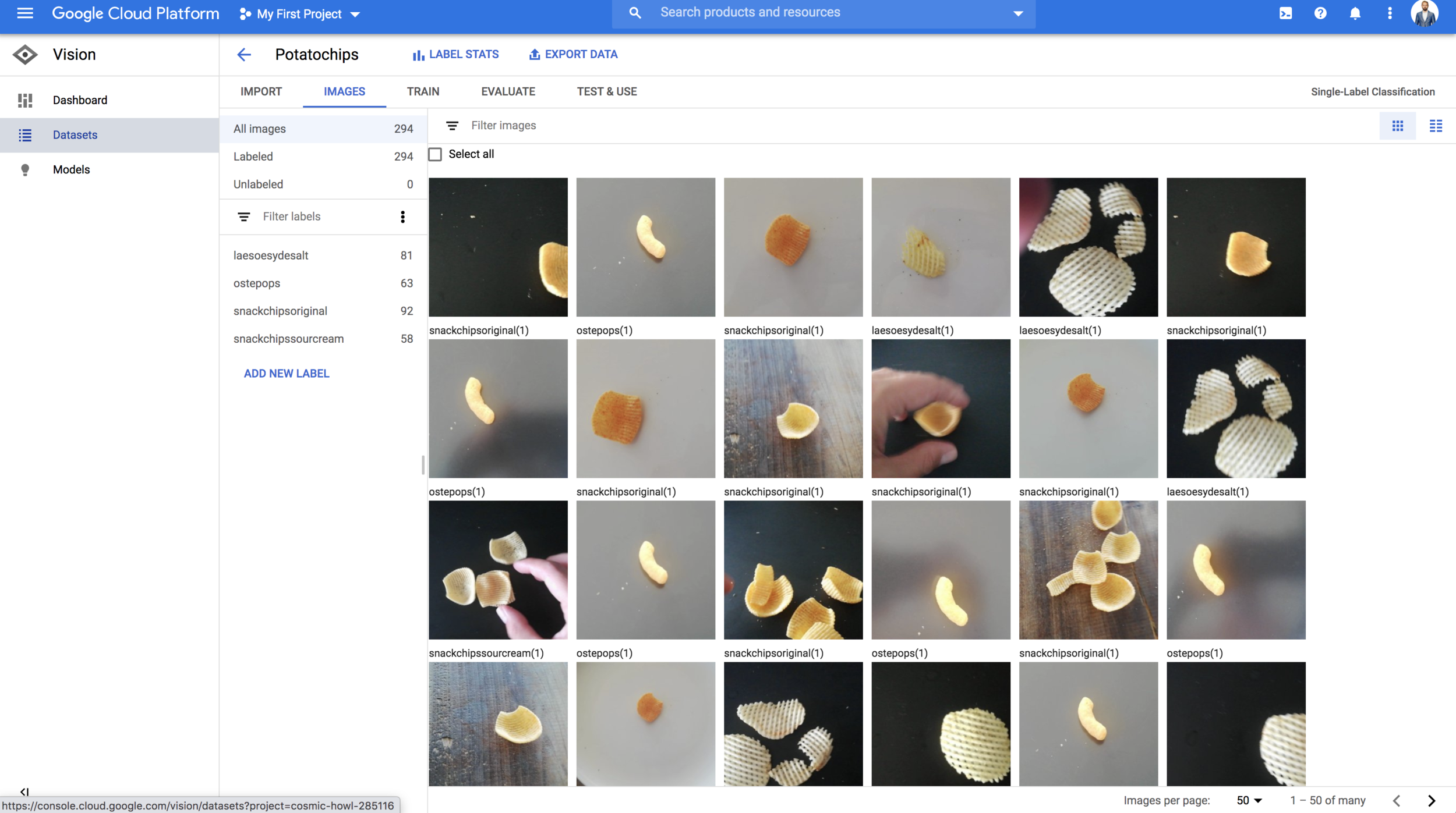 With the dataset created I know just bulk uploaded potato chips with the UI and put on labels.
